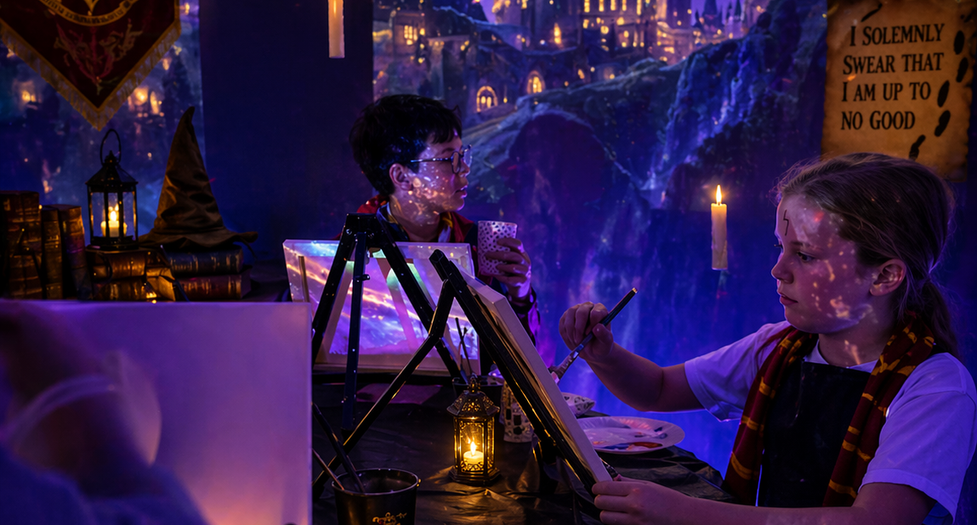 Choose themed pre-traced painting, glow pour, or sculpting